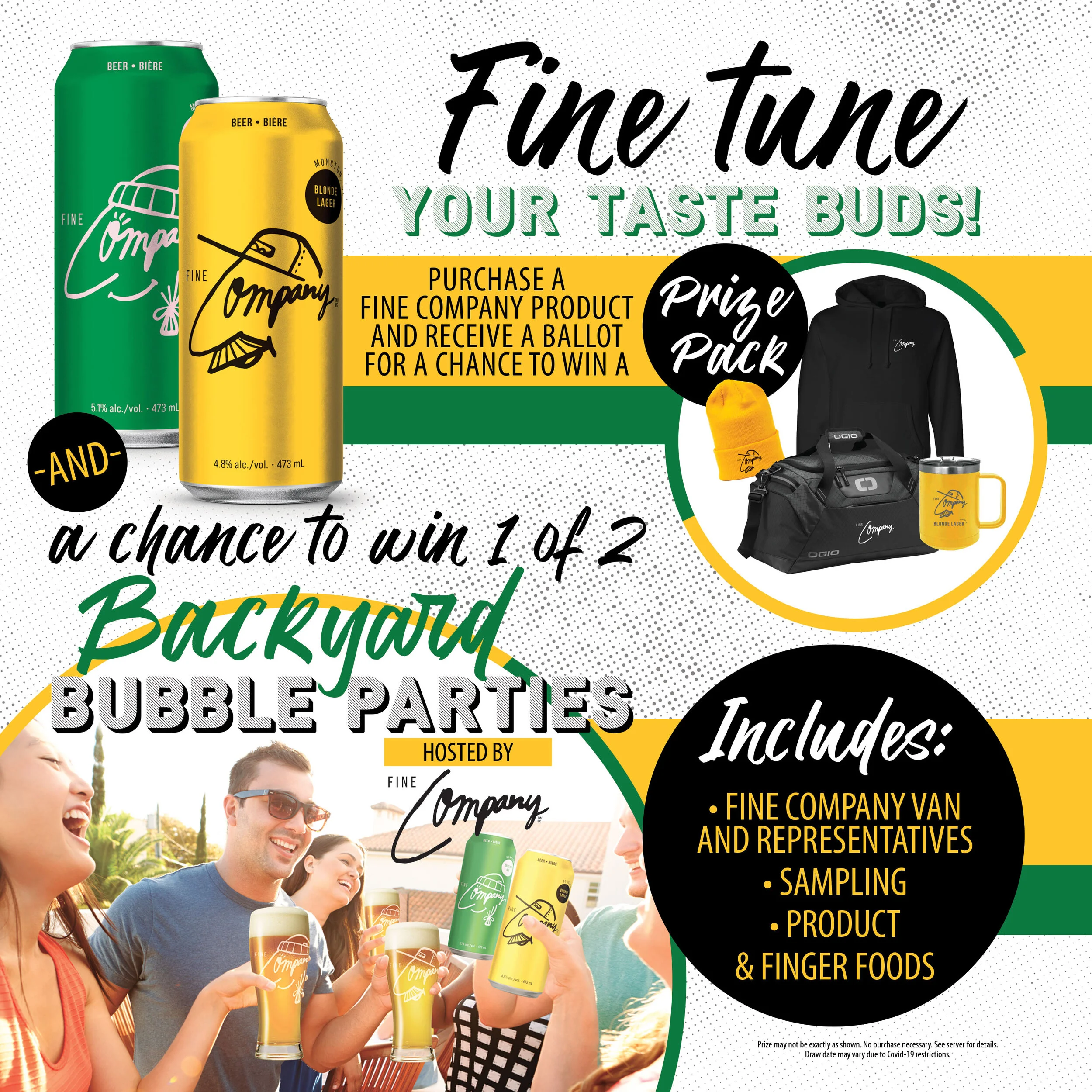 The Fine Company van will be on site with a couple of their representatives which will do product sampling and will bring along Fine Company Products and Finger Foods. The parties must be held in New Brunswick or Nova Scotia only by August 15, 2021, subject to availability, with a maximum of 10 guests or less if Covid-19 protocols in the region where the parties will be held is less than 10.
